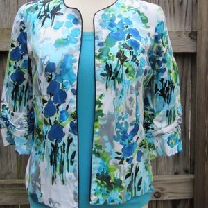 This gorgeous jacket is new with tags. Gorgeous colors in a floral print, fully lined!