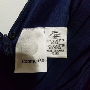 This is a Brand New without tags. is says size 34W. I was a 3X and it fit me, it runs small.100% Polyester. It is so pretty. It swirls as you walk. There is a pin on the bow. I undercovered so that you could see it. This is a perfect dress for a wedding or any type of formal or semi formal party. a True Navy Blue. If you would like to see me model it just leave a comment. It is too big on me but you will see kind of what it looks like :-) it is 56 inches long.