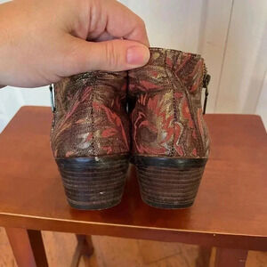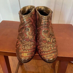 Very Volatile gold brocade ankle boots. In good preowned condition. Regular wear from use. No call outs.