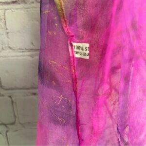 Stunning magenta pink artsy 100% silk delicate scarf ladies one size fringe