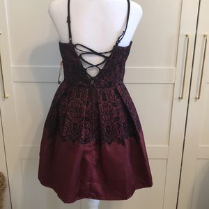 Jewal burgundy satin and black velvet with spa like design and mesh with open tie back .