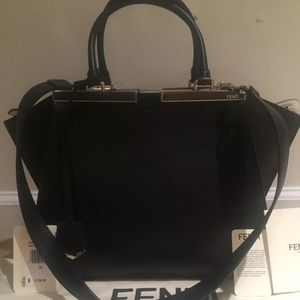 Fendi 3jours bag. Soft calfskin bag in black and white. Two leather handles and a removable shoulder strap. Zip closure. Interior lining with white leather. Made in Italy.