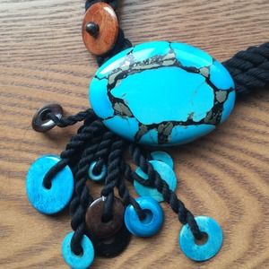 ⚡️✨Sold 🎽this is a fun tourquoise and sterling silver silk necklace.It could also be used as a belt buckle.Sold.