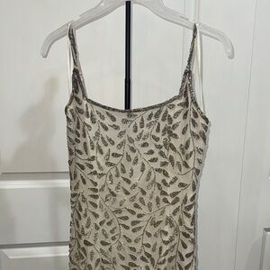 Beautiful turquoise dress with stunning gold/copper details. Elegant and absolutely gorgeous for your next occasion! Makes for a great prom dress!!