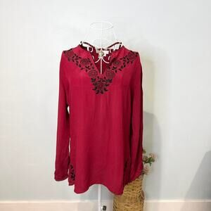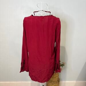 Stunning vintage 70s 100 % silk burgundy/red Victorian/edwardian button-up blouse with gorgeous embroidered lace details 🌺