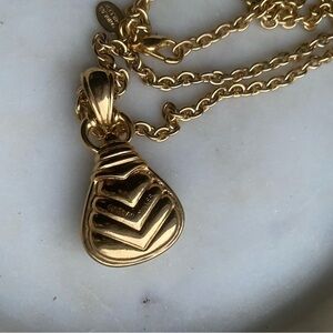Stunning vintage Nolan Miller long necklace with green and clear stones
