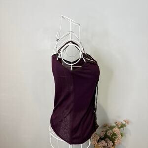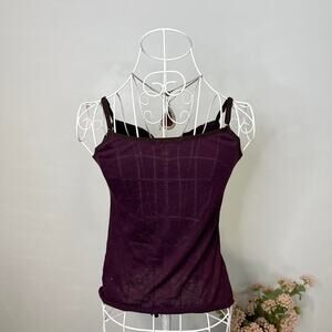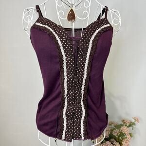 Stunning vintage y2k purple polka dot corset cami tank top with sparkly lace trim and slip 🌺