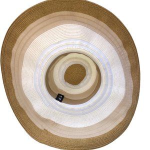 August Stunning white tan SUPER wide brim cotton canvas straw black bow beach sun hat