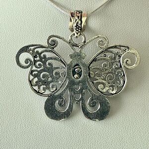 Stunning Larimar Butterfly Pendant Necklace – Silver Bali Filigree Design