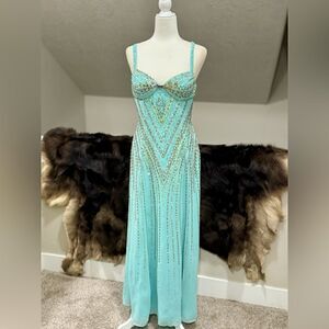 Design sample. Only one available. Sexy and attractive style. Soft chiffon fabric. Exquisite beads & sequins all over the body. This dress is absolutely eye-catching. Flowing and elegant for formal days and nights.