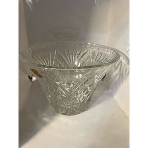 Google images shows this as a Waterford however I don’t believe that is the case. This is a gorgeous 5 inch tall by 7 1/2 inch ice bucket or wide mouth vase made of lead Crystal 24% in Poland. This is an absolutely perfect condition and is a beautiful example of vintage crystal. Absolutely no signs of wear whatsoever and the tag indicates this is brand new vintage. A perfect addition to your collection.