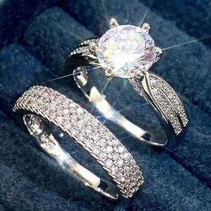 Lovers Vintage Lab Sparkling simulated Diamonds 2pcs Ring Sets Engagement Marriage Wedding Rings for Women.Perfect for any occasion