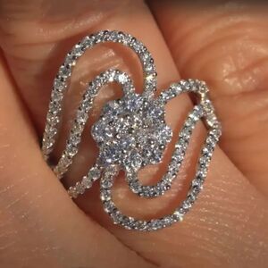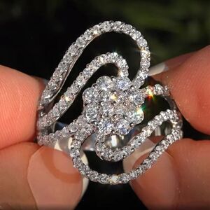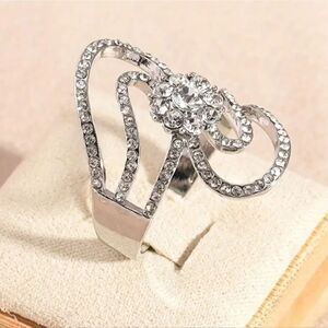 Luxury Elegant unique shaped Bridal Ring - Handcrafted Engagement Wedding Band with cubic zirconia Inlay and simulated diamonds absolutely breathtaking.