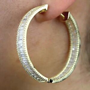 Beautiful CZ hoop earring set in gold accent With CZ eternity style