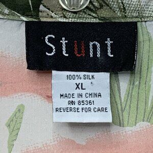 Stunt Floral Camp Shirt Womens XL Silk Button Up Side Slits Hibiscus Tropical