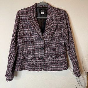 Stunt Petite Pink And Black Nubby Tweed Cotton Ramie Front Pocket Crop Blazer M