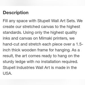 . Highest quality inks and canvas on our in Mimaki printers and then hand-cut and stretch each piece over a 1.5-inch thick wooden frame for hanging. Made In USA.