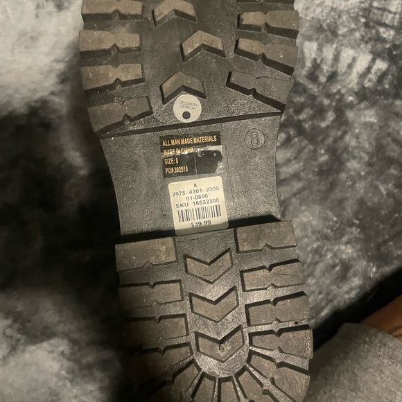 Tough black boots with strong tread. Ideal for rough terrains. Worn once