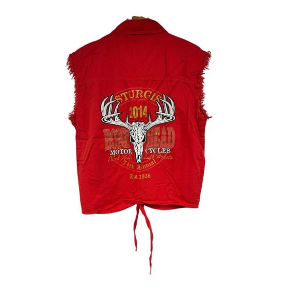 Sturgis 2014 Red Button Up Tie Front Sleeveless Shirt Graphic Biker Womens 2XL