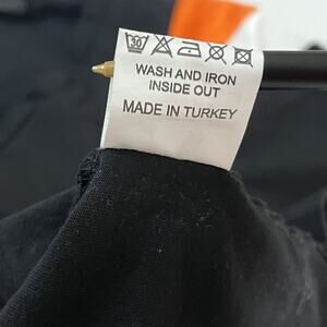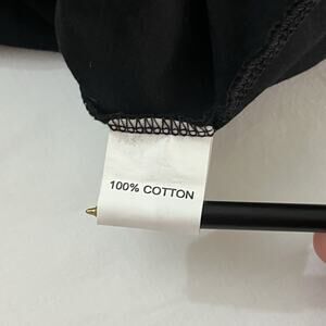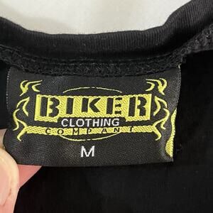 This is a women's basic black T-shirt made of a cotton blend material. It features a V-neckline and short sleeves, with a solid pattern and a Sturgis character accent. The shirt is easy to care for and can be machine washed. It is a regular fit and comes in size M. The shirt is suitable for any occasion and can be worn during any season. It is a pullover style and has no closure. The brand is Biker Clothing Company.