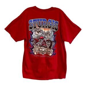 Sturgis Biker Black Hills Rally 2017 South Dakota Oversized Graphic T-Shirt in a size XL. Has a graphic hit front and back. Measures approx. 21 1/2” armpit to armpit, 29” in length. 100% Cotton. In great condition.
