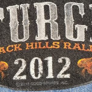 VINTAGE STURGIS VEST, BLACK HILLS RALLY 2012, MOTORCYCLE DENIM VEST, STURGIS HARLEY COLLECTIBLE, 2XL BIKER VEST, CLASSIC STURGIS APPAREL, BLACK DENIM RIDING VEST, MOTORCYCLE RALLY MERCH, RETRO HARLEY STYLE, STURGIS BIKER GEAR