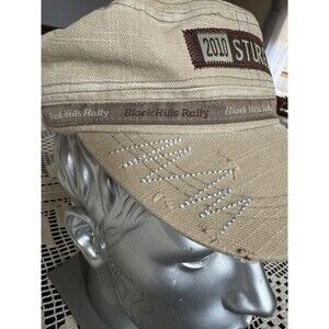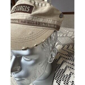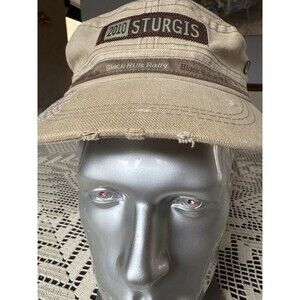 This military shaped baseball cap is from the 70th Annual Sturgis Black Hills Rally 2010 in South Dakota. It has a distressed style and an adjustable strap in back for sizing. It is in overall excellent condition, but missing one air hole stud. See photos, especially final picture. Very cool hat. Ships from the Midwest.