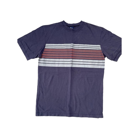 Stussy Dark Grey T-Shirt Lighter Grey Orange Stripes Size Large