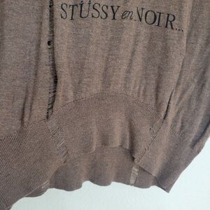 Stussy En Noir Destroyed Knitwear Brown Sweater Size Small Distressed lightweight pullover relaxed fit. Sweater distressing on the back seems to have a hole in the distressing, shown in the photo.