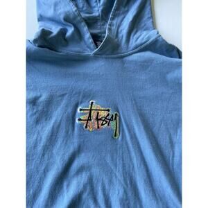 Stussy Holographic Logo Hoodie Light Blue Size Large