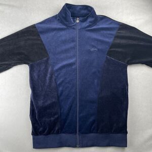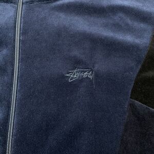 Stussy Jacket Mens Medium Navy Blue Black Velour Track Full Zip Y2K Retro Streetwear