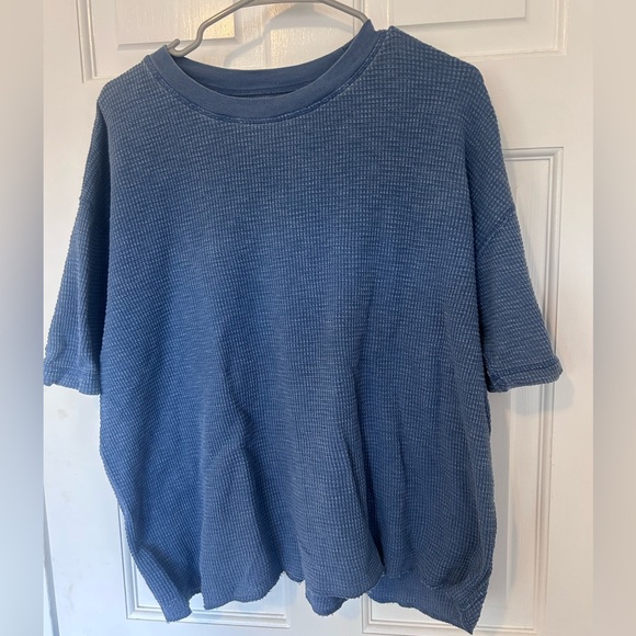 Light blue waffle knit tee by Stussy. Comfortable and stylish for everyday wear.