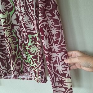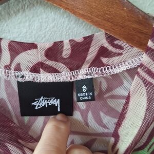 Stussy Psychedelic Palm Tree Long Sleeve Crew Neck Mesh Top. Lightweight. Semi sheer. Stretchy. Womens Size S Pit to pit flat lay 18" length from collar to hem 25.5" measurements are approximate