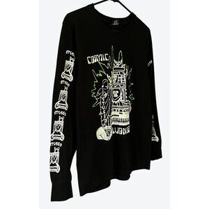 Stussy Women's Small Long Sleeve Cosmic Wonders Graphic Shirt Black Green White