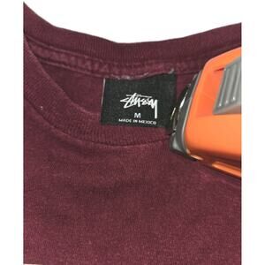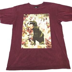 Stussy T Rex Shirt Men's Size Medium Red Casual Short Sleeve Floral Dinosaur