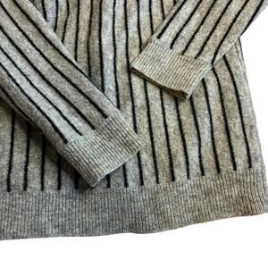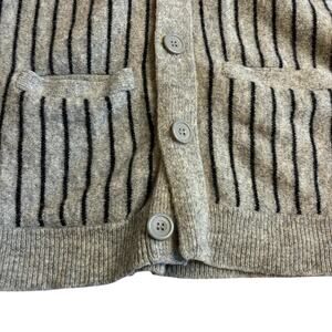 Classic Stussy Authentic lambswool cardigan in heather gray with black vertical stripes. Premium 100% lambswool knit—soft, warm, and breathable. V-neck with five-button front, ribbed cuffs/hem, and two front patch pockets. Clean Stussy neck label; tagged Size S (men’s). Timeless streetwear meets cozy knitwear—layer over tees or a white oxford with denim and sneakers. Gently worn; no holes, odors, or major flaws noted.