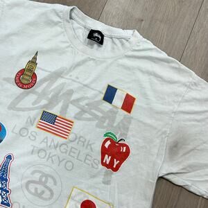 Stussy World Tour Flags Tee T Shirt Size Medium M White B2