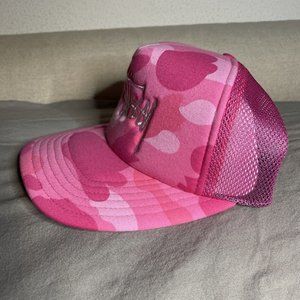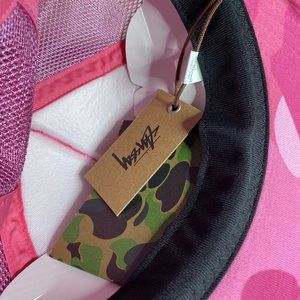 Stussy X Bape A Bathing Ape Trucker Mesh Cap Hat 2022 Pink IN HAND READY TO SHIP.
