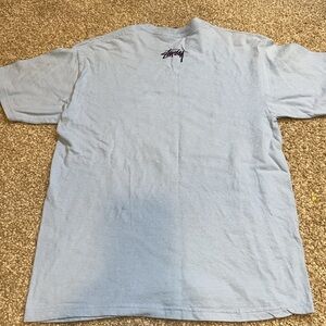 This shirt is a baby blue/periwinkle type color, a little more blue than photos are showing. Font is eggplant purple. The tee is actually a heathered pattern, and the white shows through in some areas a little more, almost giving the look of bleach (see last photo for what I mean) but the shirt is in EUC! No flaws. See all photos before buying and ask any questions below!