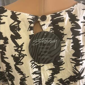 Stussy Black and White Patterned Dress with Red Accent