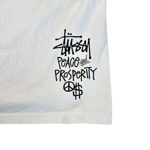 Stussy Peace & Prosperity T-Shirt Size Large White 90s Skate Surf Hip Hop