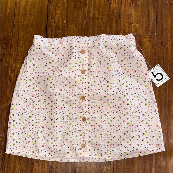 Style 5 Skirt Womens Size Med Pink Floral Decorative Buttons Pull On New NWT