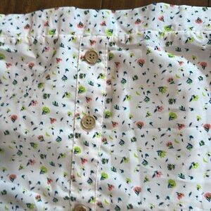 Elevate your wardrobe with this chic delicate floral wood tone mock button-down skirt from . Featuring a delightful pink and green pattern, it's perfect for any occasion. Pair it with your favorite top for a stylish look.