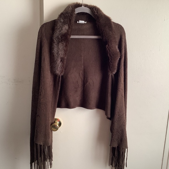 Never worn Acrylic Shawl nice fit and the brown color is beautiful.