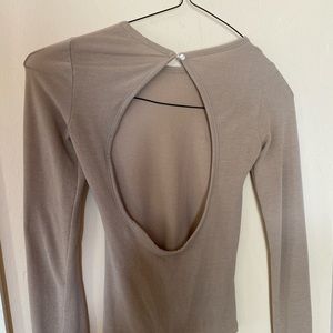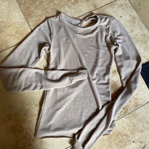 Backless tan long sleeve top. Thin and a tad see through. Some pilling and wear.