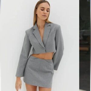 Style Addict Mardi Crop Jacket in Pinstripe Grey