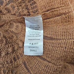 In great condition Style Apparel Sheer Lace Kimono Burnt Orange Bell Sleeve Swim Cover-Up Size Small.