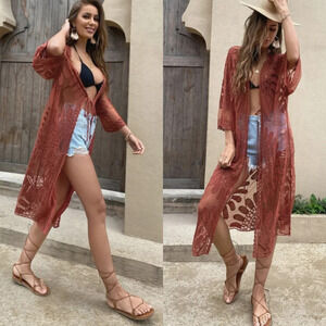 Style Apparel Sheer Lace Kimono Coverup Women's L Boho Festival Hippie Artsy