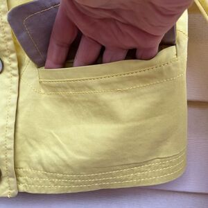Style Benetton yellow 3/4 sleeve standup collar jacket. Front buttons, lapels, S
