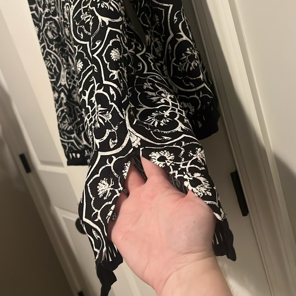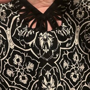 Style & Co. 100% Linen Black & White size 12 shirt tunic top w slits on sides non smoking home beautiful blouse